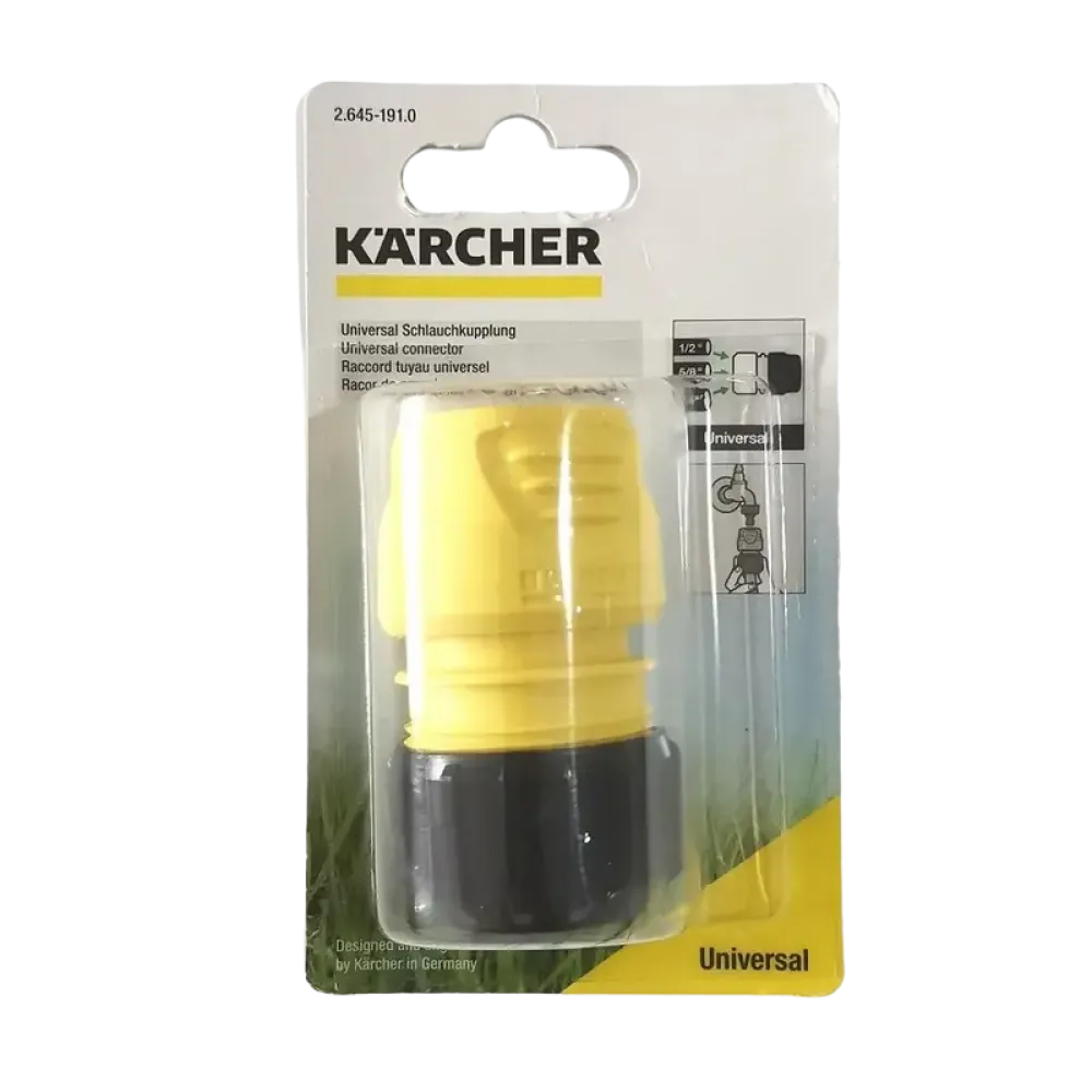 Conector universal pentru furtun Karcher 2.645-191.0 — este un dispozitiv de conectare fiabil, conceput pentru atașarea rapidă și ușoară a furtunurilor de diferite diametre. Asigură o conexiune etanșă și este compatibil cu toate sistemele standard de irigare.